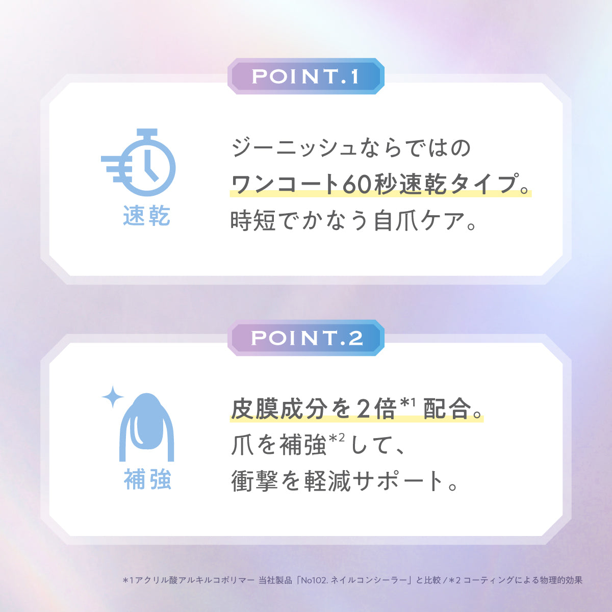 ・爪へのやさしさを考えたフリー処方(パラペン類、トルエン不使用)